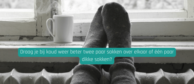Bij iedere winterprik komt de vraag binnengewaaid: houd je je voeten warmer met twee paar sokken over elkaar of kies je beter voor één paar dikke sokken? De Standaard van 18 november 2025 behandelde de vraag naar bijna jaarlijkse gewoonte (1). Volgens de expert in De Standaard heeft het zeker zin om meerdere lagen over elkaar te dragen, omdat de luchtlaag tussen beide sokken een goede isolator is. Dat vermijdt dat er warmte verloren gaat. Een voorwaarde daarbij is wel dat de schoen ruim genoeg is, want in krappe schoenen is er amper sprake van een isolerende luchtlaag tussen beide sokken.